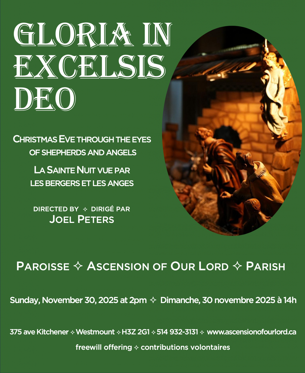 The Ascension of Our Lord choir presents a Christmas Concert on the First Sunday of Advent – November 30th at 2:00 PM, featuring our wonderful Ascension Choir, including four McGill Scholar choir members under the direction of the Ascension parish’s organist and choir director, Joel Peters.